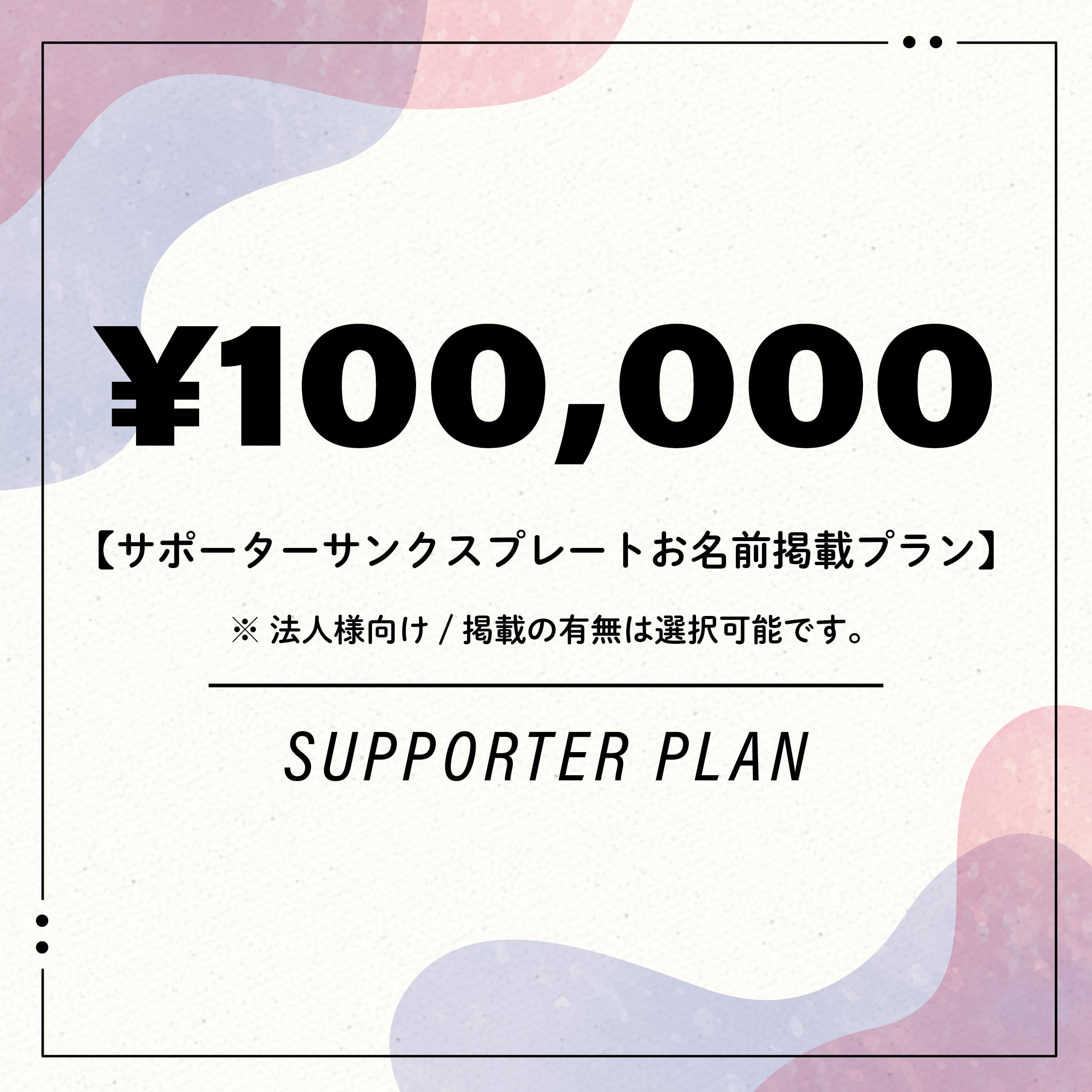 【100,000円】サポーターサンクスプレートお名前掲載プラン※法人様向け